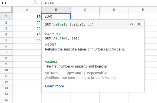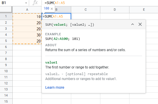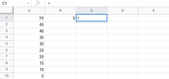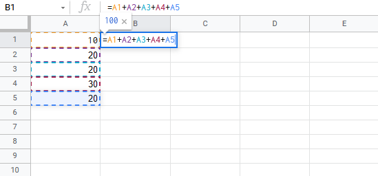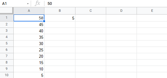 Let's keep the numbers from the last exercise. If you did last exercise, remove the value in B1