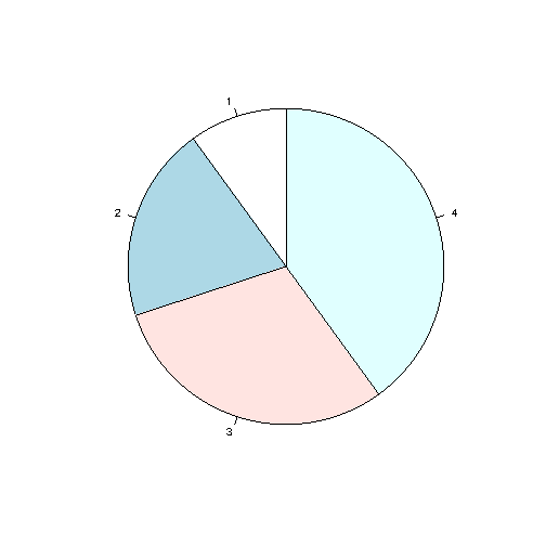 As you can see the pie chart draws one pie for each value in the vector (in this case 10, 20, 30, 40).